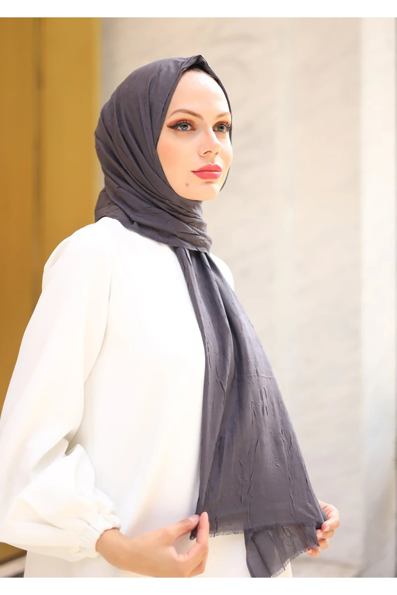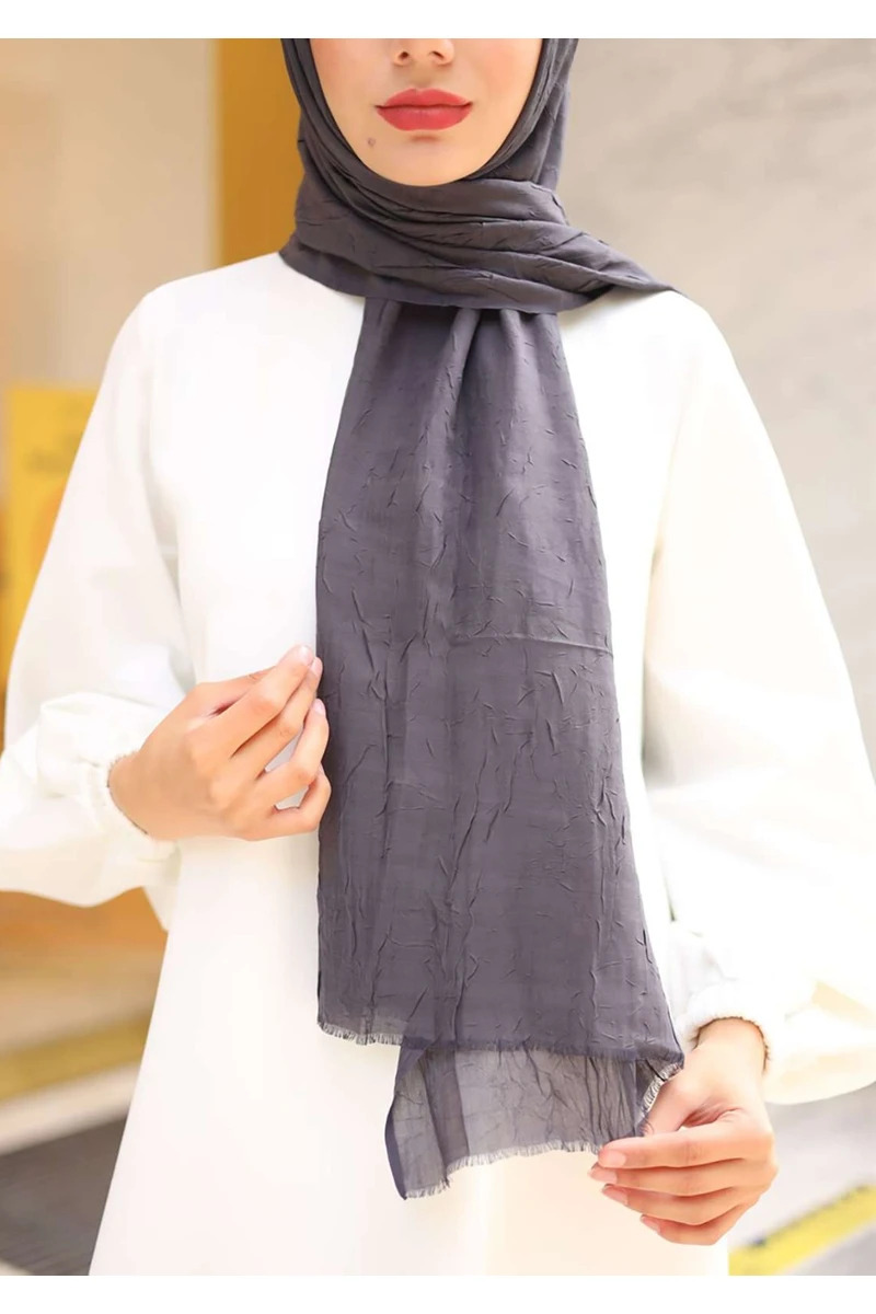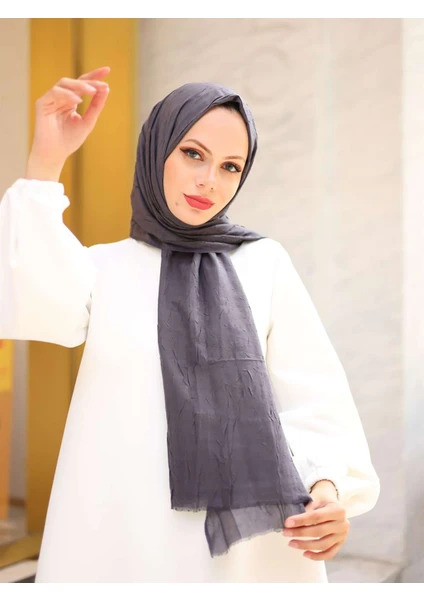 Doğal dokusu ve romantik rengiyle Bambu Kraş Şal – Füme , her kombinle uyum sağlayan zarif bir tamamlayıcıdır.