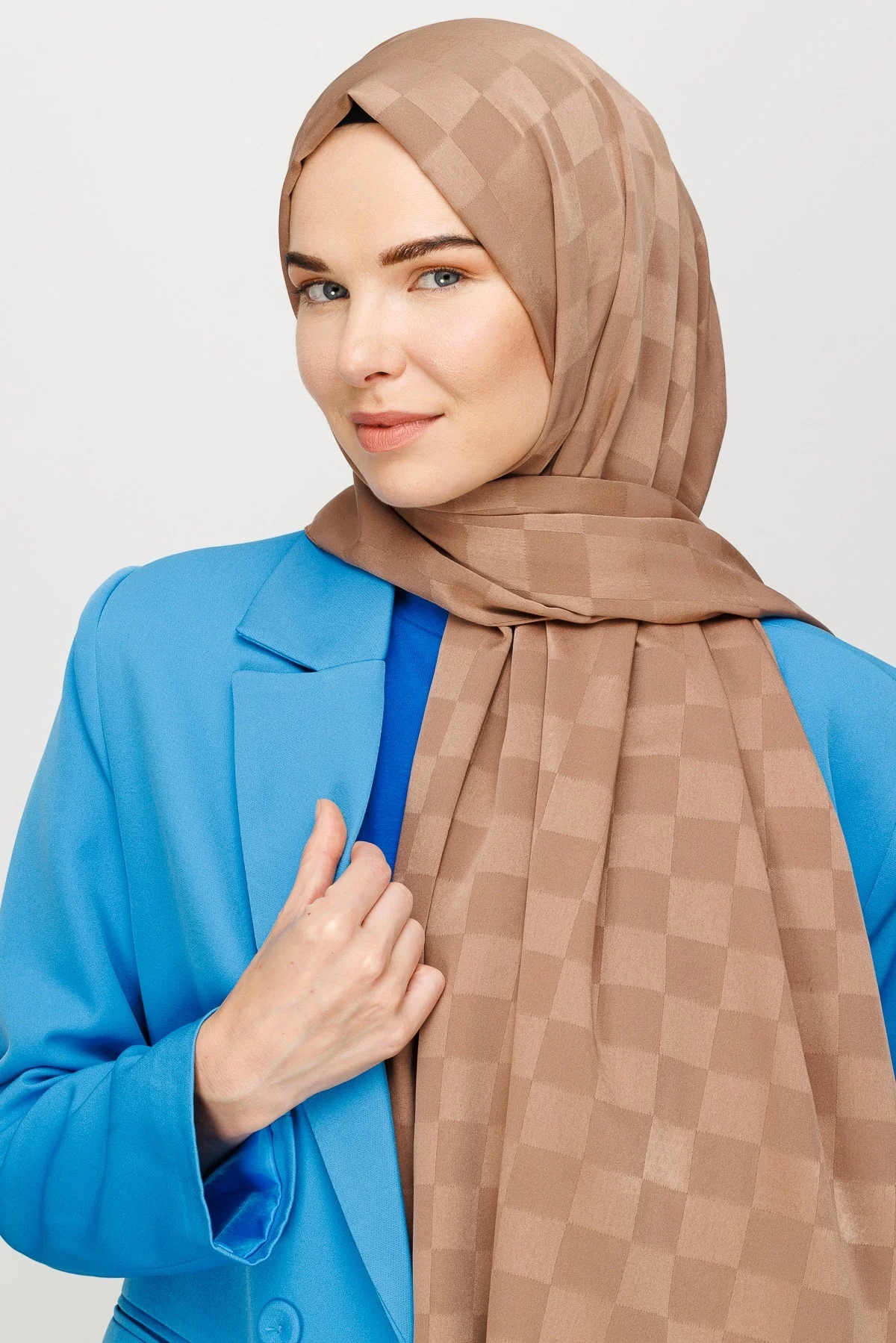 Dama Desen Açık Haki Ipeksi Jakar Şal