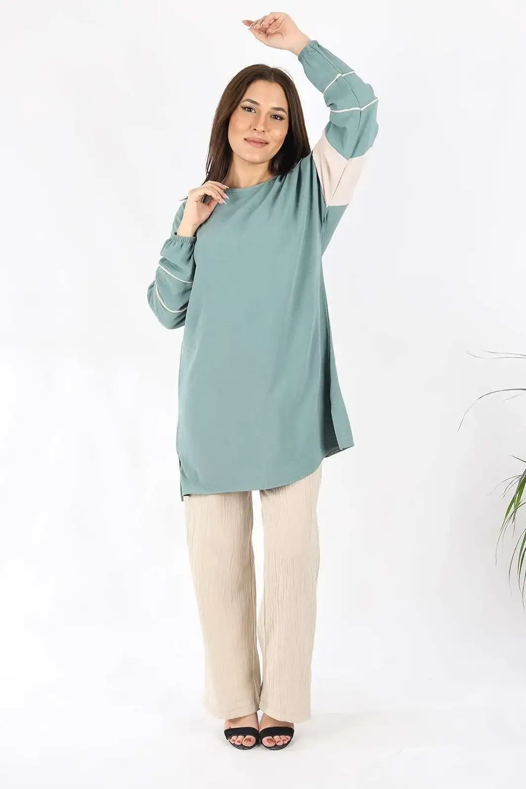 Garni Detaylı Aurobin Kumaş Tunik Yeşil