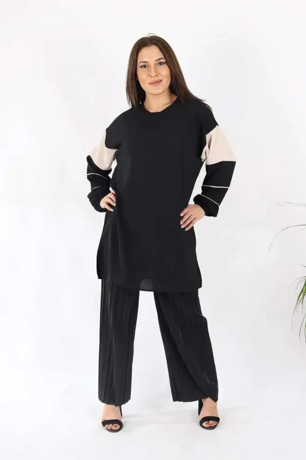 Kapüşonlu Tunik – Siyah, zarif duruşuyla minimalist ama güçlü bir görünüm elde etmek isteyenler için vazgeçilmez bir parça.