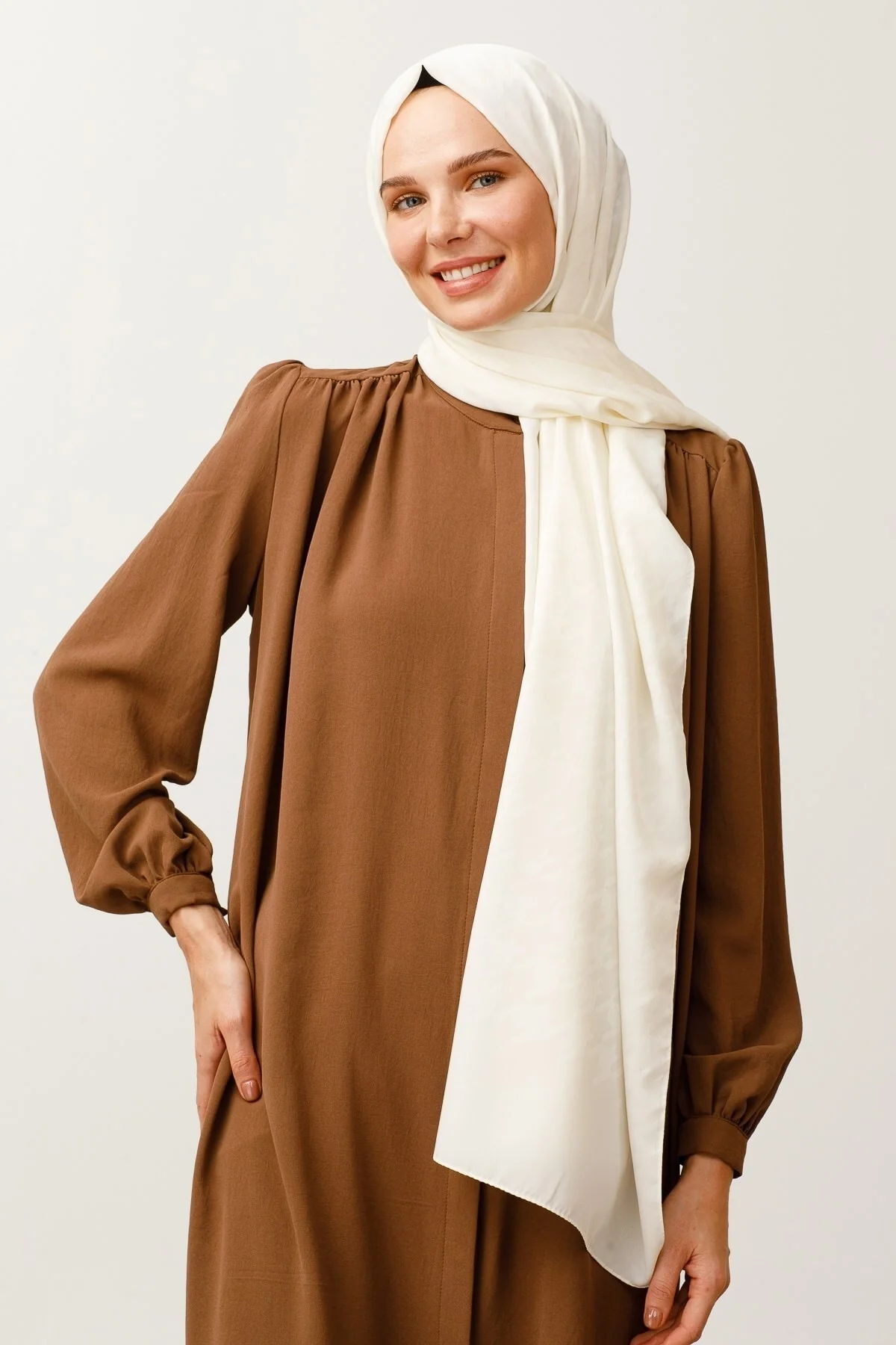 Akıcı formu sayesinde farklı bağlama stillerine kolayca uyum sağlar. Kırışmaya dayanıklı yapısı ile gün içinde formunu korur ve bakımı oldukça pratiktir. Ekru; siyah, beyaz, bej ve gri tonlarıyla mükemmel uyum yakalayarak geniş bir kombin alanı sunar. Günlük kullanımdan davet kombinlerine kadar pek çok stile rahatlıkla adapte olur.