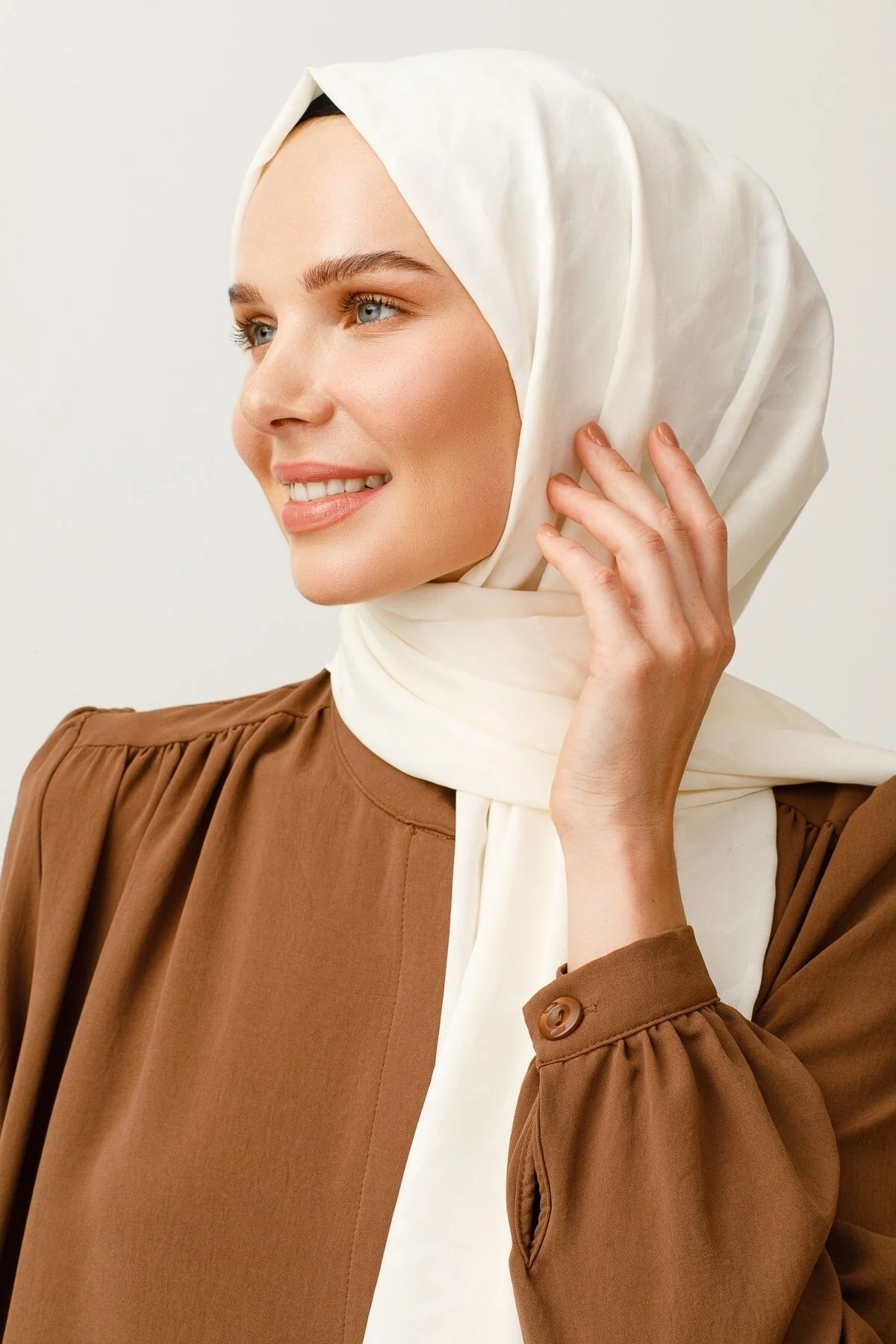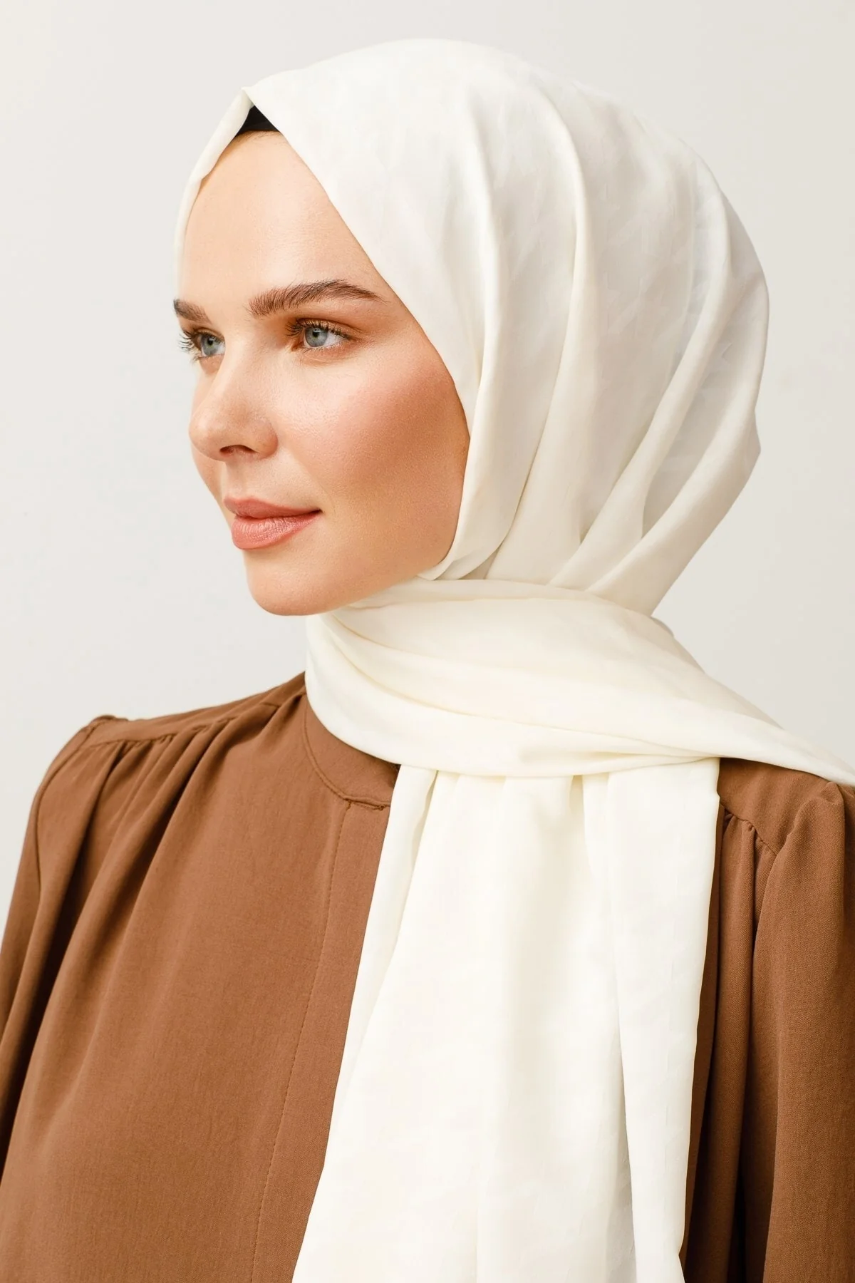 Zamansız kazayağı deseni ile tasarlanan Kazayağı Desen Parlak Jakar Şal Ekru, klasik şıklığı modern çizgilerle buluşturur. Parlak jakar dokusu ışığı zarif şekilde yansıtarak şala sofistike bir görünüm kazandırır. Hafif yapısı sayesinde gün boyu ağırlık hissi oluşturmaz ve rahat bir kullanım sunar.