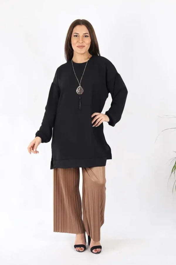 Kolyeli Aurobin Kumaş Turuncu Tunik, Canlı rengiyle enerjik ve modern bir duruş sergileyen Kolyeli Aurobin Kumaş Tunik – Turuncu, sade tasarımıyla günlük stilinize hareket katıyor. Kolye detayı ile birlikte sunulan bu özel parça, kombinleme derdi olmadan tek hamlede şıklık yakalamanızı sağlıyor. Kol bileklerindeki lastik detayı, kullanım kolaylığı sunarken, aurobin kumaşın akışkan yapısı sayesinde hafiflik ve konfor bir arada sunuluyor.