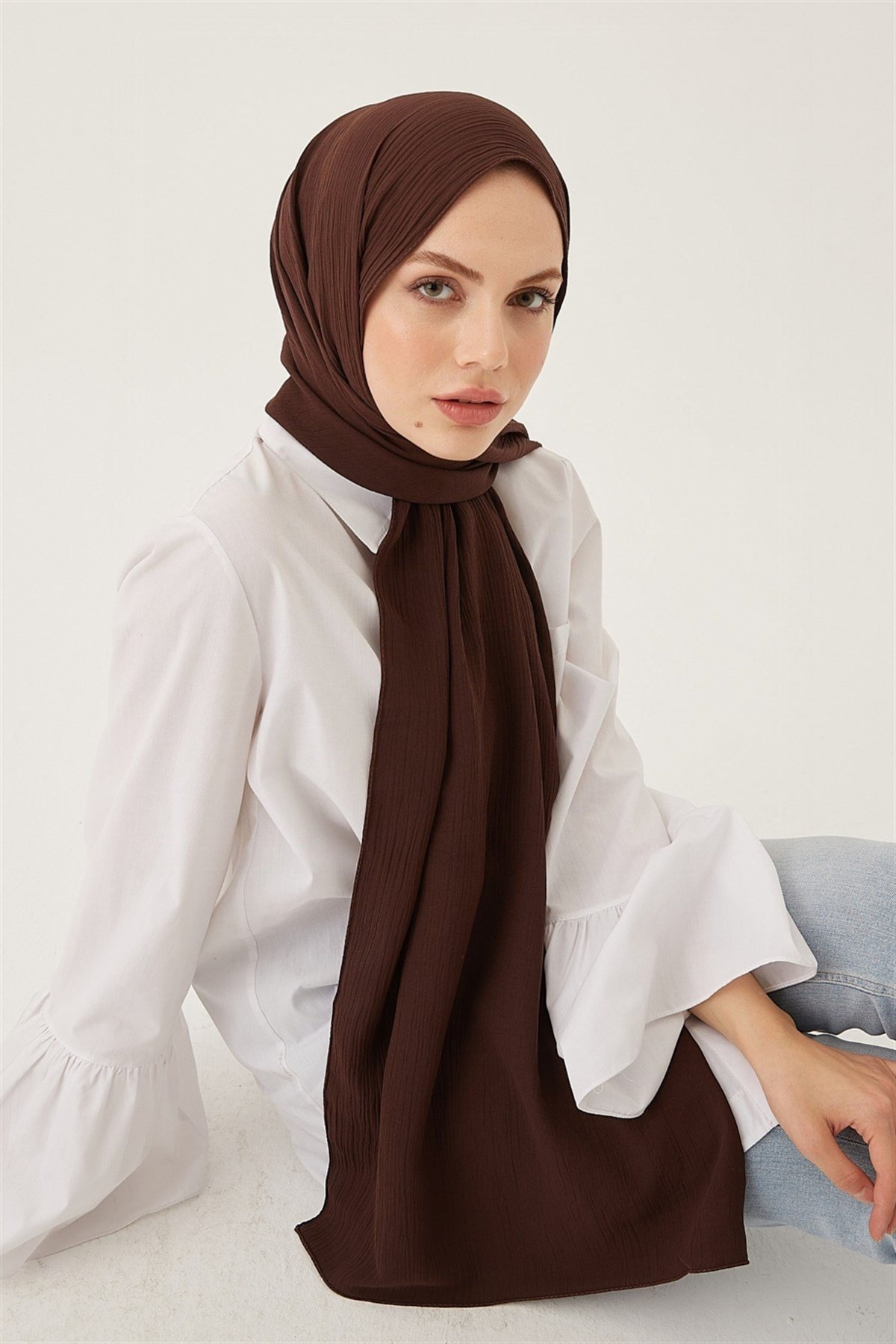 Krinkıl İpeği Şal Acı Kahve, doğallığı ve zarafeti bir araya getiren, kombinlerin vazgeçilmez parçasıdır.