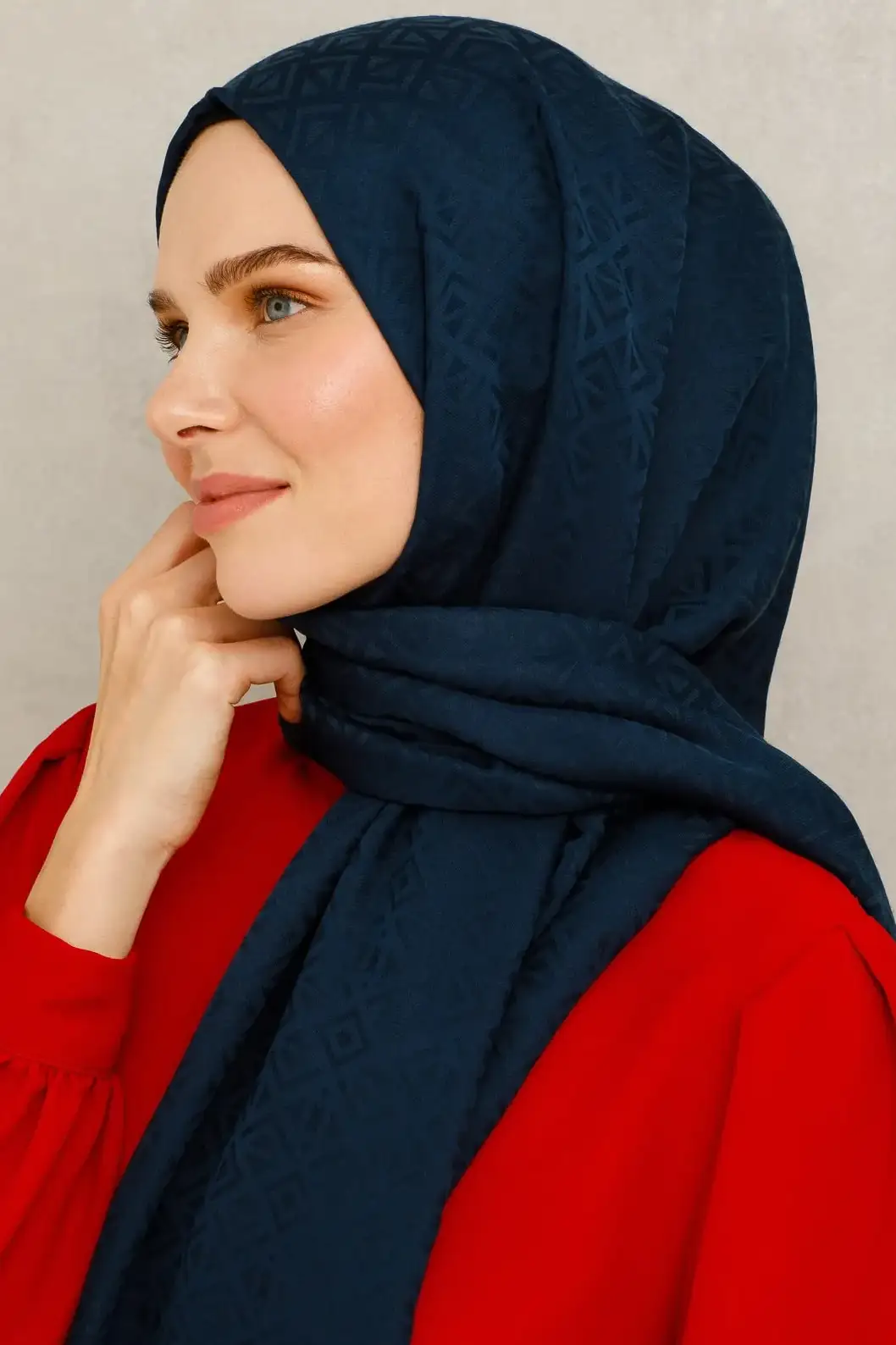 Pamuk Jakarlı Küçük Kare Desen Şal Lacivert, klasik görünümü modern detaylarla buluşturan özel bir tasarımdır. Küçük kare desen dokusu sadeliğe hareket katarken, pamuklu yapısı sayesinde gün boyu konfor sağlar. Tok ve kaymaz formuyla başta sabit durur, iç göstermeyen yapısıyla güvenli bir kullanım sunar.