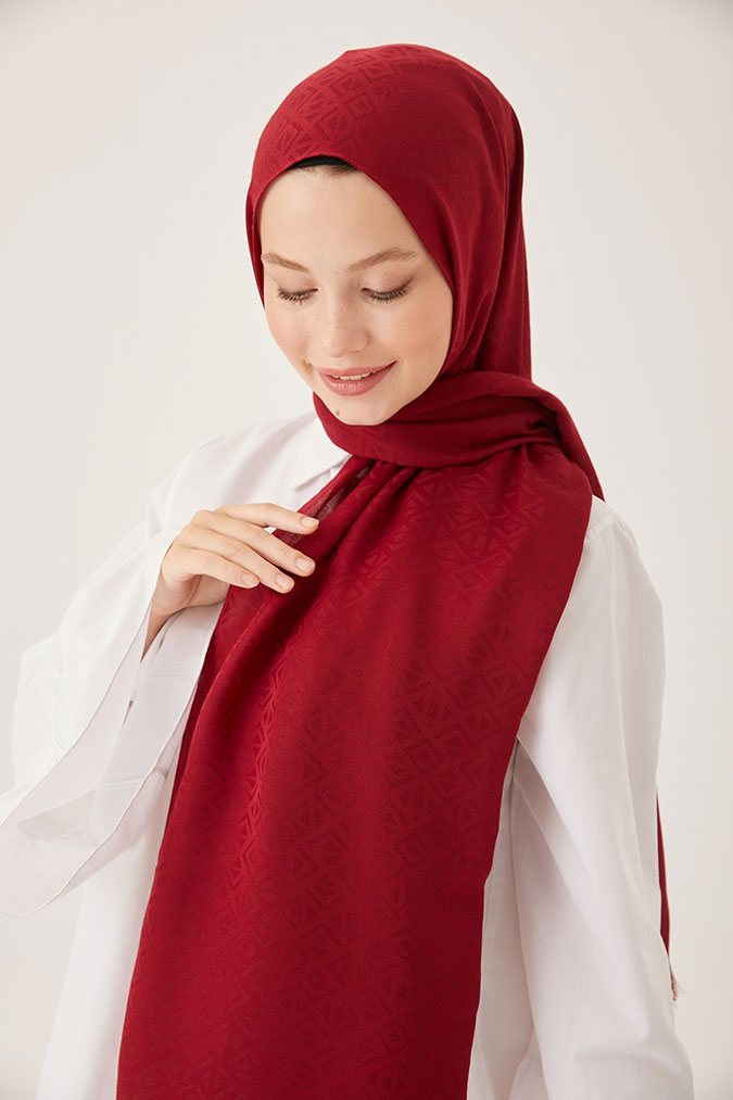 Piramit Desen Bordo Pamuk Jakar Şal, hem şık hem de pratik bir tercih arayanlar için gardırobun vazgeçilmezlerinden olacak.