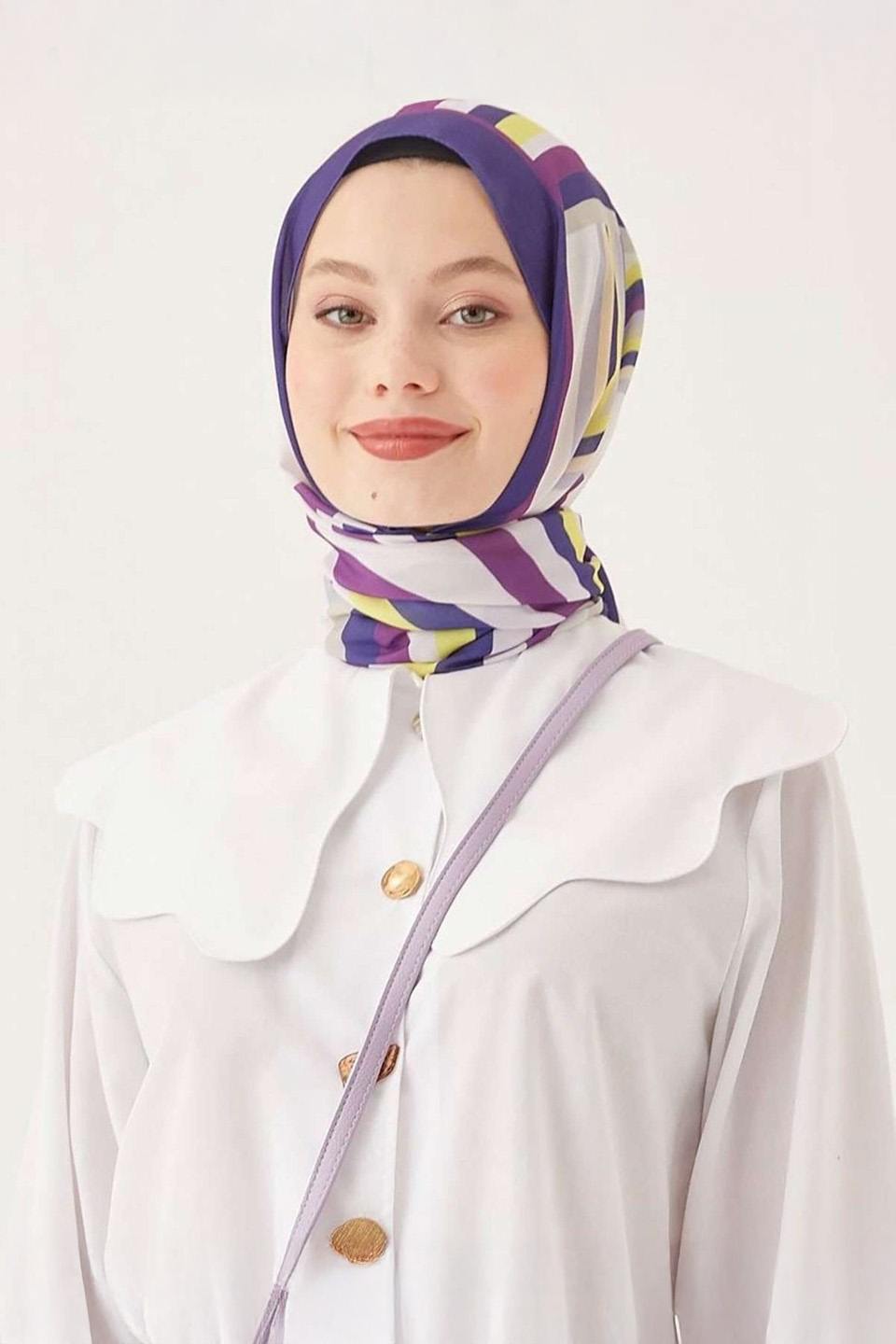 Tok yapılı krep kumaşı sayesinde kolay şekil alır, kaymaz ve gün boyu formunu korur. Hafif ve nefes alabilen dokusu ile konforlu kullanım sunarken, ütü gerektirmeyen yapısıyla zamandan tasarruf sağlar. Dijital baskı teknolojisiyle üretilen desenleri ise canlılığını uzun süre korur.