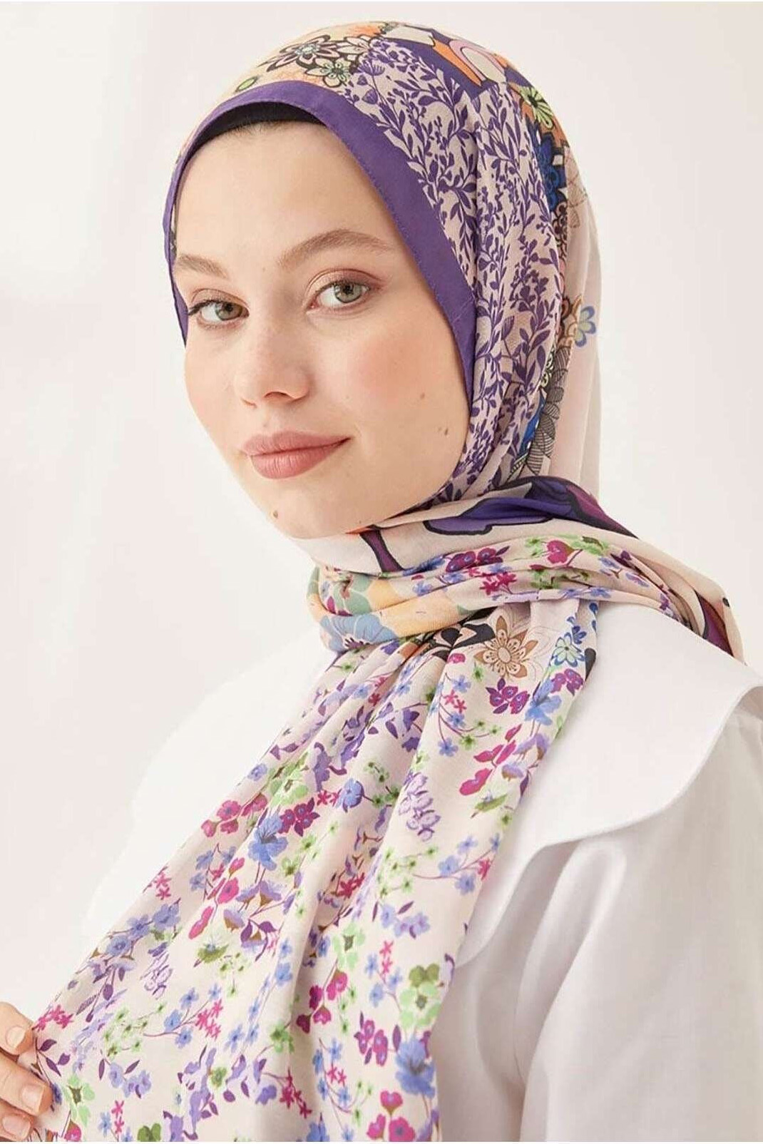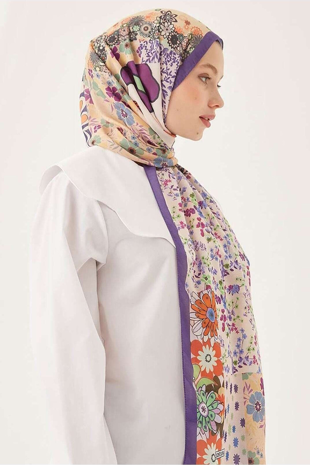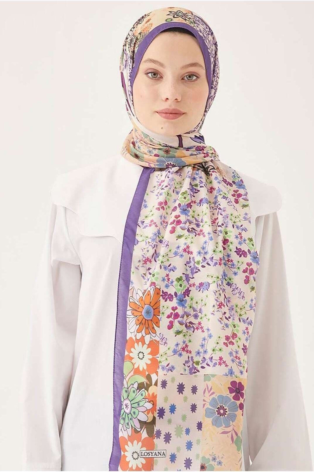 Yamalı Çiçek Desen Dijital Soft Şal Mor, romantik ve şık stilin vazgeçilmez parçası.