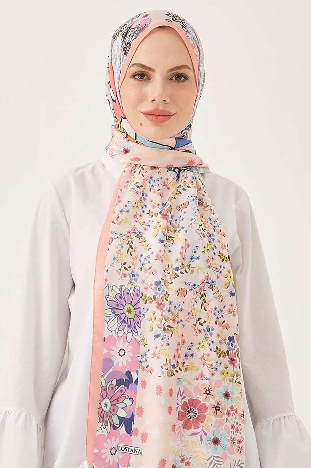Yamalı Çiçek Desen Dijital Soft Şal Yavruağzı, romantik ve şık stilin vazgeçilmez parçası.
