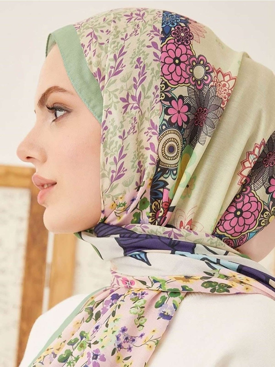 Yamalı Çiçek Desen Dijital Soft Şal Yeşil, romantik ve şık stilin vazgeçilmez parçası.